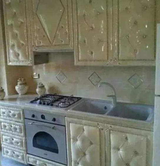 这个把厨房里的橱柜都做成这样真皮的柜门的,也是很让人费解……