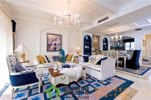 蔚蓝色的浪漫情怀,海天一色、阳光高照的纯美自然是地中海风格的灵魂。地中海风格的美,包括“海”与“天”明亮的色彩、仿佛被海水冲刷过后的白墙、薰衣草、玫瑰、茉莉的香气、路旁奔放的成片花田色彩、历史悠久的古建筑、土黄色与红褐色交织而成的强烈民族性色彩。而地中海风格分类在很大程度上也是根据民族性来分类的,这一点大家需要注意下。