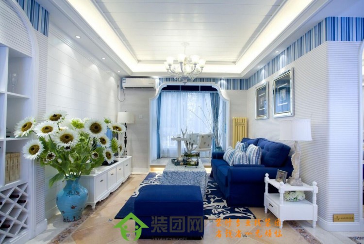 大面积的蓝与白,清澈无瑕,诠释着人们对蓝天白云,碧海银沙的无尽渴望。带有迷藏感的空间格局,提供给居住者不同的心理感受。